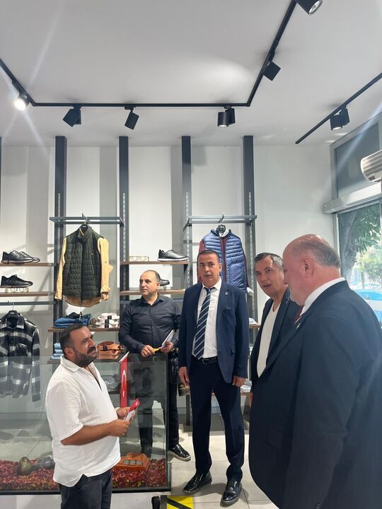 İl ve ilçe yöneticilerinin katılımıyla gerçekleşen ziyarette, esnafın talep ve beklentileri birinci ağızdan dinlendi.