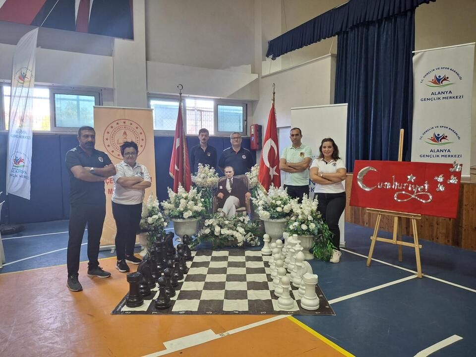 TURNUVA, Alanya Kaymakamlığı, Alanya Belediyesi, Alanya Gençlik ve Spor İlçe Müdürlüğü, Alanya İlçe Milli Eğitim Müdürlüğü ve Alanya Satranç İlçe Temsilciliği iş birliğiyle organize edildi. Cumhuriyet’in 102. yıl dönümü onuruna düzenlenen etkinlikte, hem sporun hem de milli birlik ve beraberlik duygusunun önemi vurgulandı. Etkinlik, İstiklal Marşı ve saygı duruşu ile başladı. Açılış konuşmalarında, Cumhuriyet’in kazanımlarına sahip çıkmanın ve gençlerin sporla iç içe büyümesinin önemi dile getirildi. Ardından sahneye çıkan halk oyunları ekibi, sergiledikleri yöresel dans gösterisiyle büyük alkış aldı. Renkli görüntülere sahne olan törende, maskotlu eğlence ve müzikal performanslar sporcuların yüzünü güldürdü. Veliler ve izleyiciler, hem Cumhuriyet Bayramı coşkusunu hem de satranç turnuvasının rekabet dolu atmosferini birlikte yaşadı.