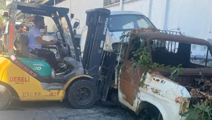 Alanya Sanayi Sitesi’nde hurda ve sahipsiz araçlar Alanya Belediyesi ile Metal İşleri Odası’nın ortak çalışmasıyla kaldırılıyor