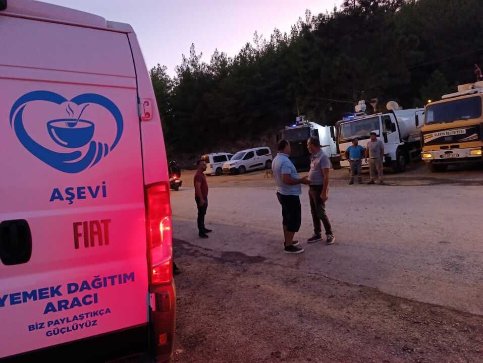 Yangının ilk başladığı Aliefendi Mahallesi başta olmak üzere, Şıhlar, Kargıcak ve Yaylakonak mahallelerinde gece gündüz demeden görev yapan itfaiye, orman personelleri ve yangın söndürme çalışmalarına katılan gönüllü vatandaşlar için aşevi tarafından hazırlanan kumanyalar sahaya ulaştırıldı. Antalya Büyükşehir Belediyesi Alanya Kırsal Hizmetler Birimi Sorumlusu Ahmet Uzun, bu büyük felaketin yaşandığı ilk andan itibaren sahada olduklarını belirtti. Uzun, "Büyükşehir Belediyesi Aşevi'nin hazırladığı yiyecek ve içecek kumanyalarını, sahada görev yapan ekiplerin tamamına ulaştırdık. Ekiplerimize ve kahramanca mücadele eden bölge halkına gerekli kumanyaları sağladık" dedi. Sahada sergilenen olağanüstü mücadele örneği için herkese şükranlarını sunan Uzun, bir daha böyle felaketlerin yaşanmaması dileğinde bulundu.