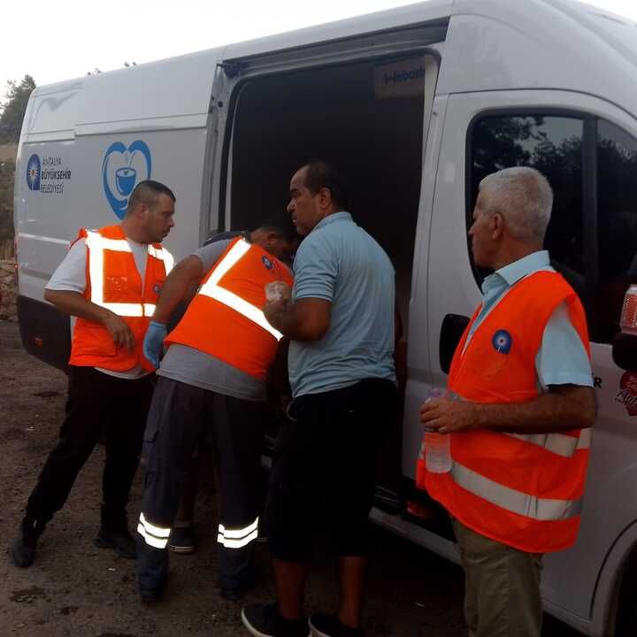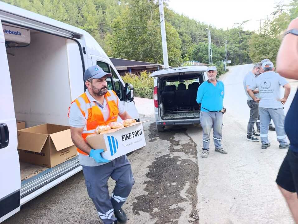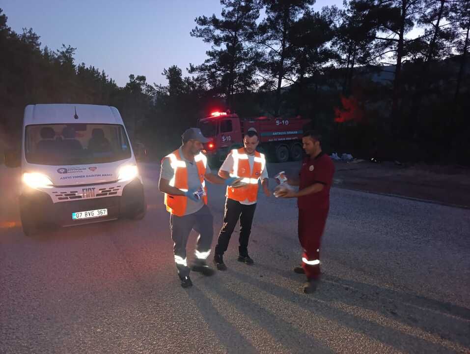 Büyükşehir Belediyesi'ne bağlı Alanya Aşevi ve Kırsal Hizmetler Birimi'nin iş birliğiyle, yangın bölgesinde görev yapan tüm personele ve vatandaşlara yiyecek ve içecek dağıtımı gerçekleştirildi.