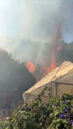 YANGIN, bu sabah Payallar Mahallesi'ndeki çalılık alanda meydana geldi. Henüz belirlenemeyen nedenle başlayan yangın, rüzgarın da etkisiyle kısa sürede büyüyüp, yakındaki 2 seraya da sıçradı. İhbar üzerine bölgeye itfaiye ekipleri ve jandarma sevk edildi. Yangın ekiplerin müdahalesiyle söndürülürken, 2 dönüm çalılık alan ile 2 serada hasar oluştu. (DHA)