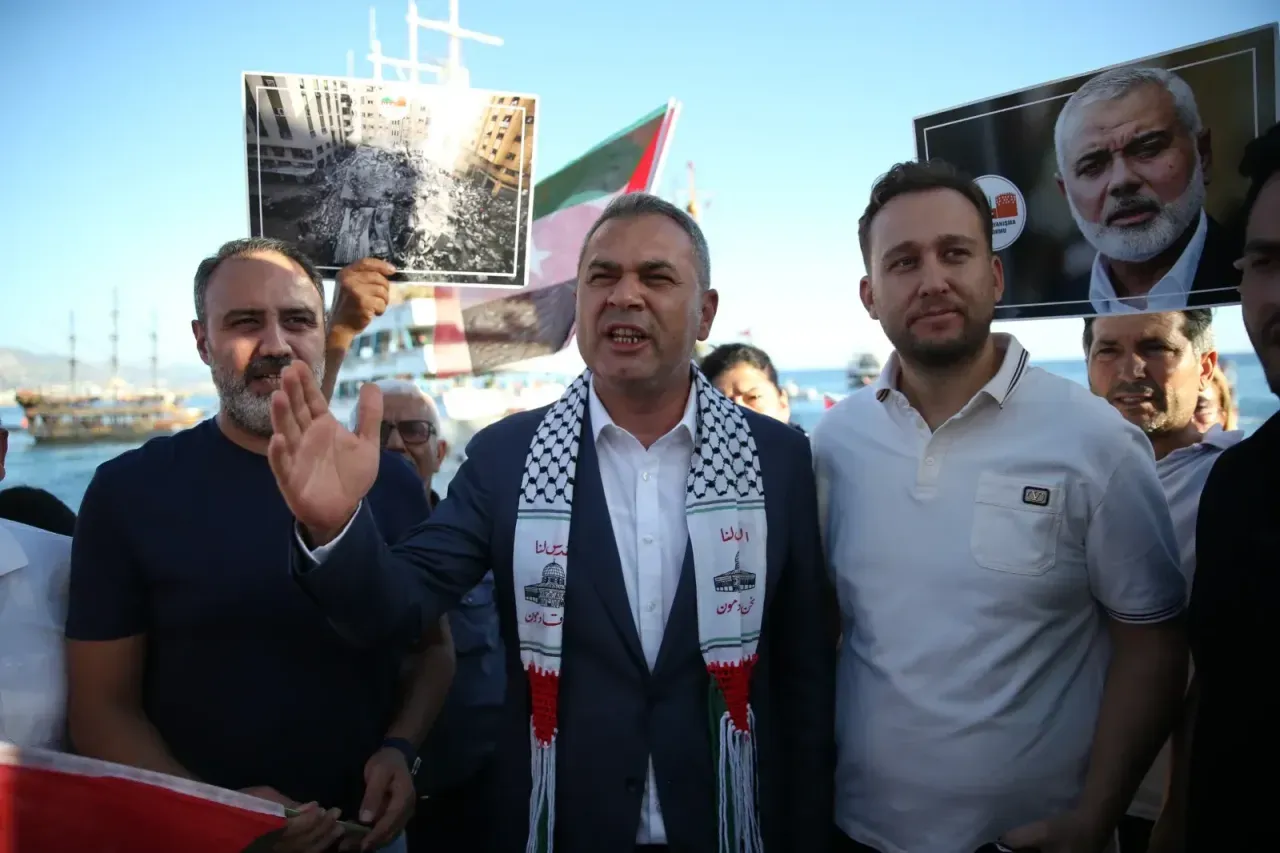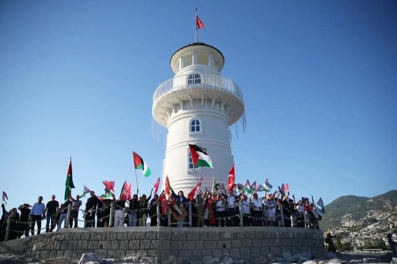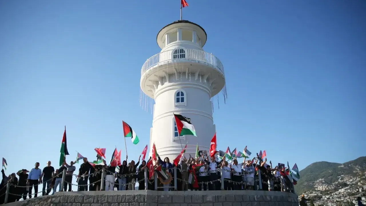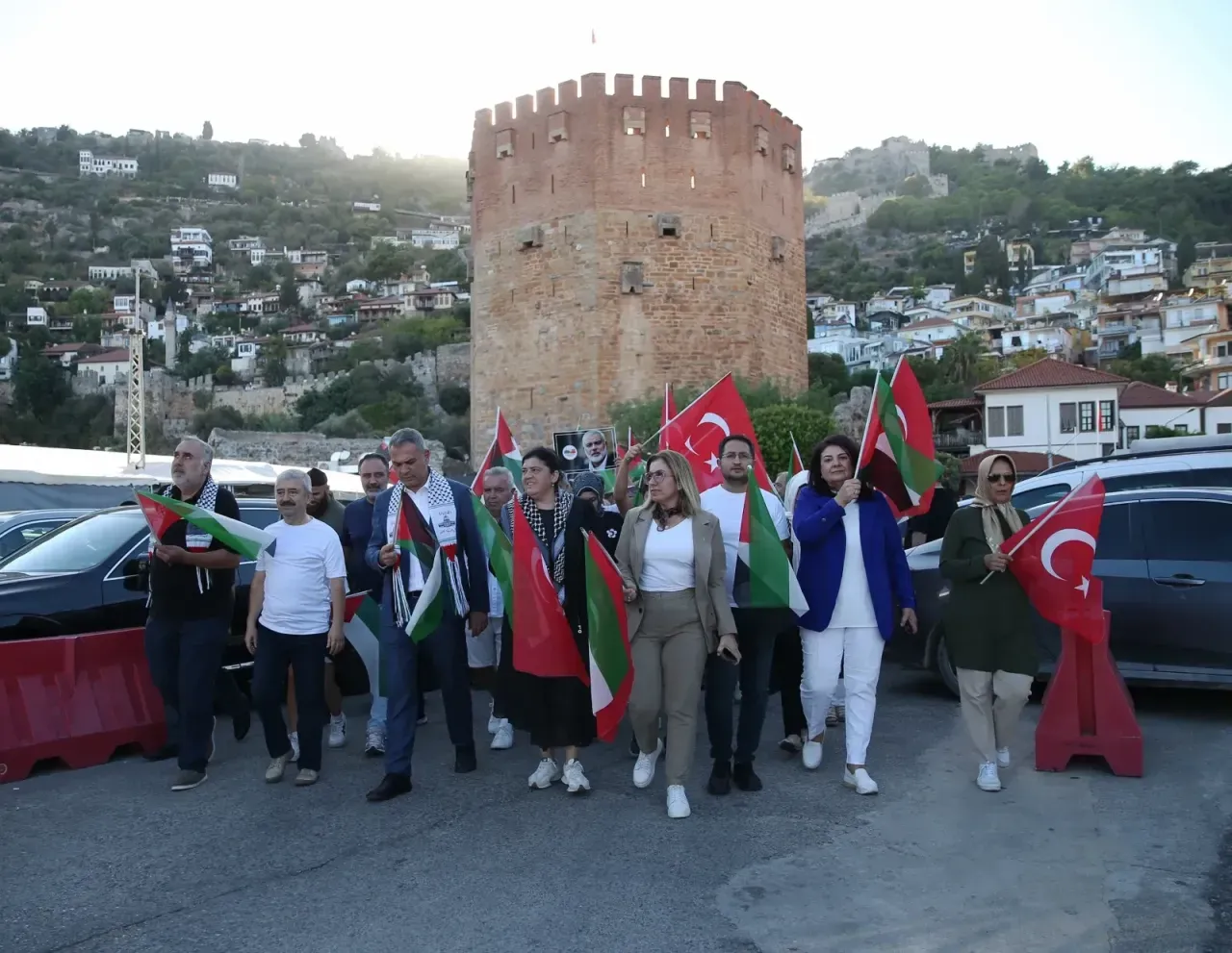 Alanya'da, İsrail'in Gazze'de sürdürdüğü soykırıma, Filistin'de yaşanan insanlık dramına dikkati çekmek ve Küresel Sumud Filosu'na destek amacıyla "Gazze Kararlılık Yürüyüşü" gerçekleştirildi