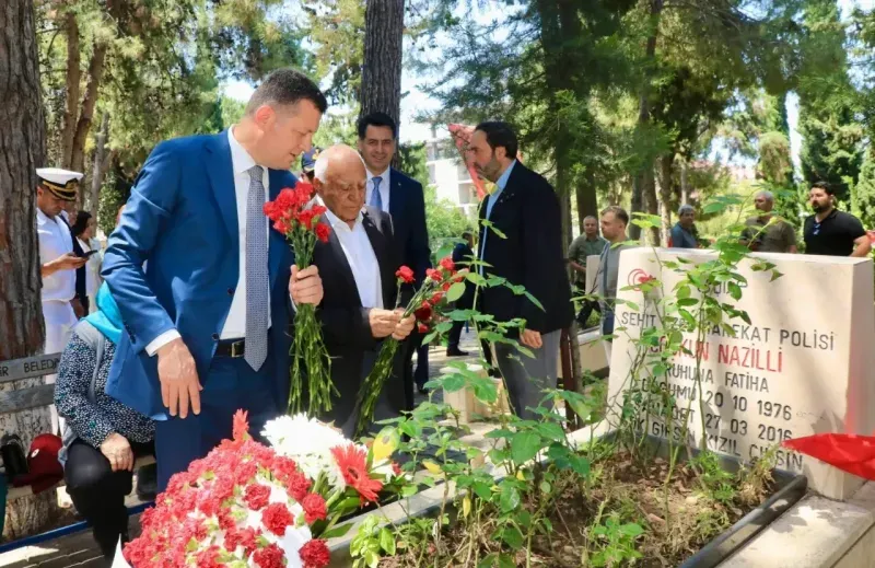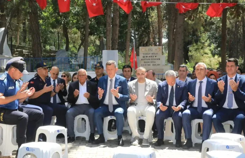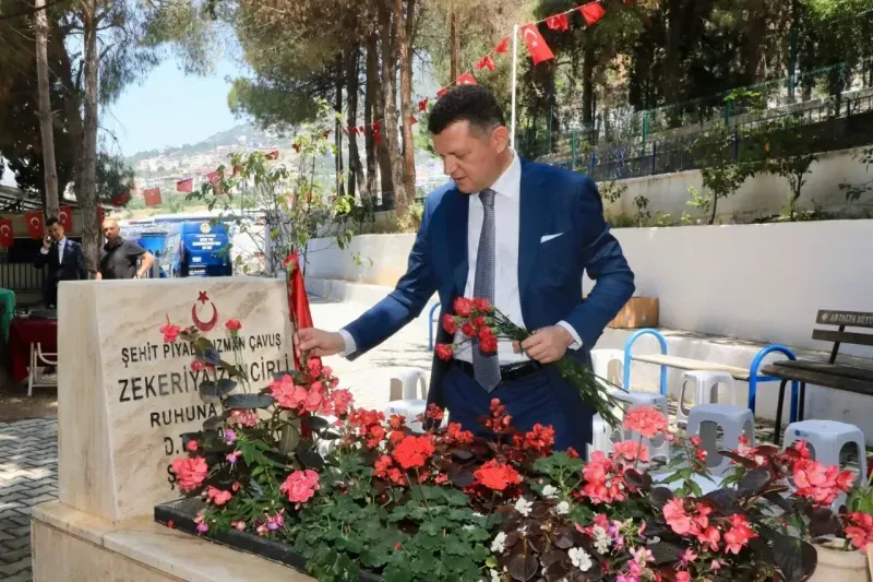 YAPILAN ziyarete Kaymakam Ürkmezer, Antalya CHP Milletvekili Aykut Kaya, Alanya Belediye Başkanı Osman Tarık Özçelik, Kurum Amirleri, Siyasi Partiler ve Şehit Ailelerimiz katıldı. Programda şehitlerimizin ruhu için Kuranı Kerim okunarak dualar edildi. Protokol ile birlikte şehitlerimizin kabrine karanfil bırakan Kaymakam Ürkmezer, Vatanımız için şehadet şerbetini içmiş tüm şehitlerimizin ruhu şad olsun diyerek, Şehit ailelerimiz ve Gazilerimizin Kurban Bayramlarını kutladı. (Alanya Kaymakamlığı BÜLTEN)