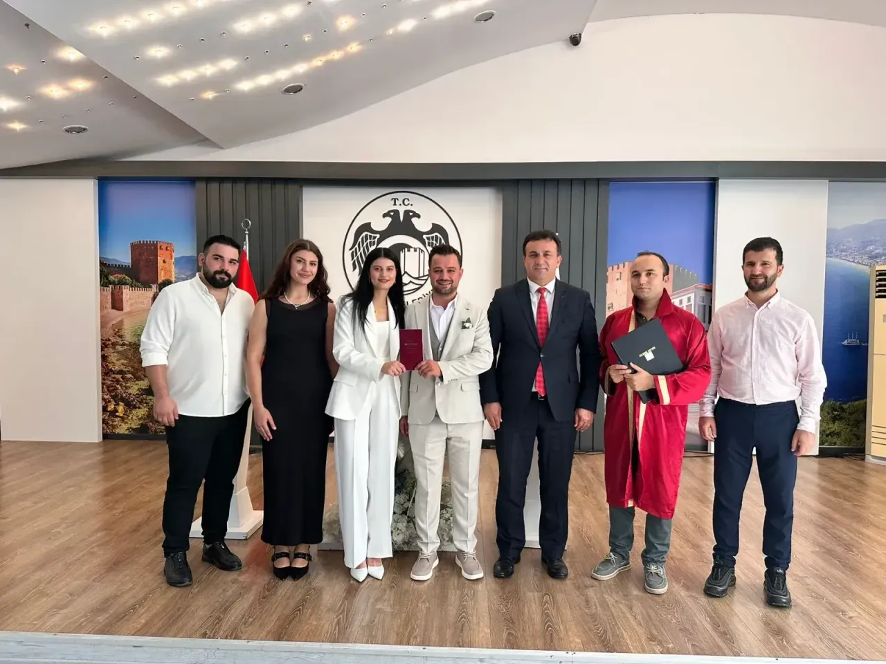 Alanya Belediyesi Nikah Salonu, genç bir çiftin daha mutluluğuna sahne oldu. Bir süredir nişanlı olan Kübra Nur Koska ve Ali Han Metin, mutlu birlikteliklerini evlilikle taçlandırdı