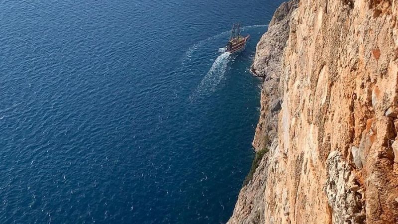 Alanya’da turistleri eğlendirmek için düzenlenen bir gösteride 30 metre yükseklikten denize atlayan çalışan, kısa süreli paniğe yol açtı. Olay, öğle saatlerinde Alanya Kalesi açıklarında gerçekleşti. Korsan temalı turistik teknede görevli kişi, kayalıkların üzerinden kendini denize bıraktı.
