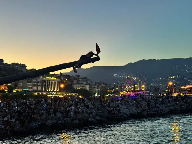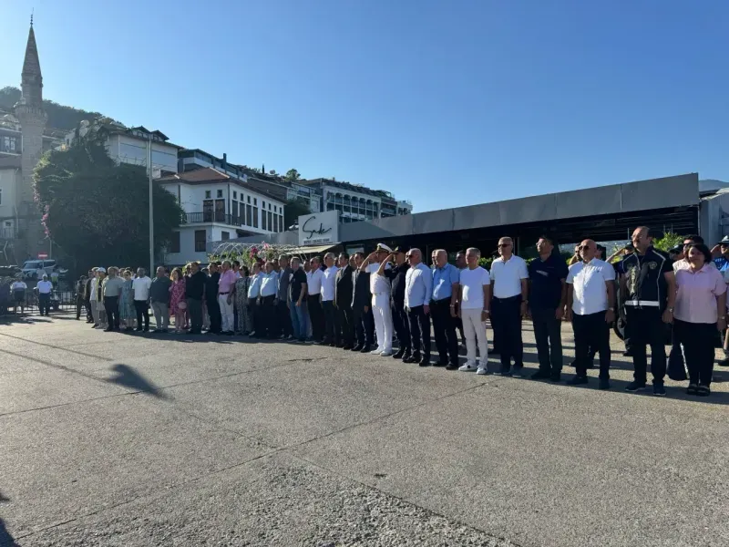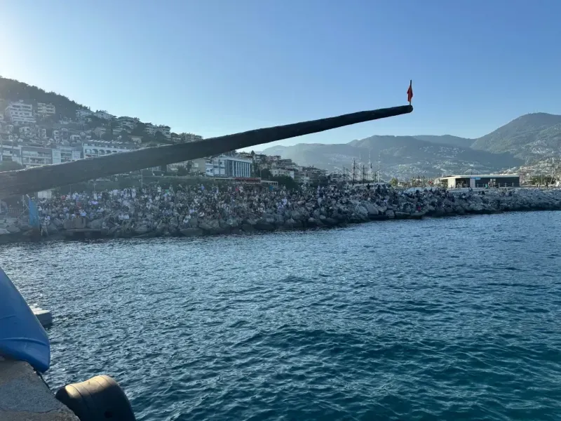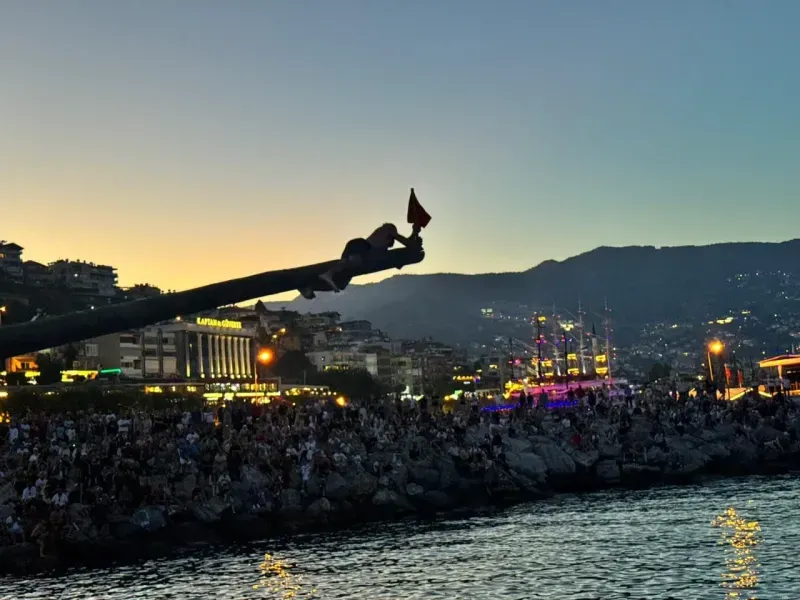 AKŞAM saatlerinde gerçekleştirilen kutlamalar, Kızılkule önündeki Atatürk Anıtına çelenk sunumuyla başladı. Saygı duruşunda bulunulup, İstiklal Marşı'nın okunmasının ardından Liman Başkanı Mehmet Sayhan, anıta çelenk sundu ve daha sonra günün anlam ve önemine ilişkin konuşma yaptı. Buradaki törene, Şakir Öner Öztürk, Belediye Başkanı Osman Tarık Özçelik, Liman Başkanı Mehmet Sayhan, Alanya Ticaret ve Sanayi Odası (ALTSO) Başkanı Eray Erdem ile protokol üyeleri, siyasiler ve sivil toplum örgütlerinin temsilcileri katıldı. İskeleye geçen protokol heyeti tekneye binerek, denize çelenk bıraktı ve tribündeki yerlerini aldı.
