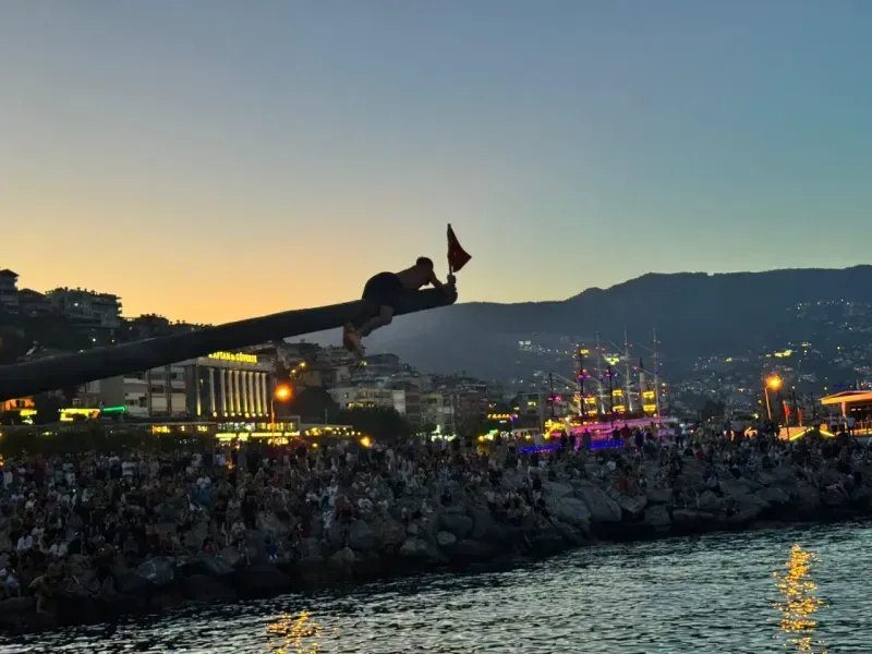 vazgeçilmezi yağlı direk yarışması, protokol ve vatandaşlardan büyük ilgiyle karşılandı. Onlarca kişi, direğin uç kısmındaki Türk bayrağını almak için kıyasıya performans sergiledi. Yarışmayı, Emirhan Şevik kazandı. Katılımcıların her birine çeşitli işletme ve firmalar tarafından hediyeler verildi. Kabotaj Bayramı kutlamaları kapsamında geçen sene ilki Galip Dere Plajı’nda gerçekleştirilen Gece Yüzme Etkinliği bu yıl Kızılkule altı Soğukkapı Plajı’nda düzenlendi. (Ramazan ÖZDEMİR)