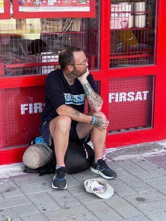 Çevrede bulunan özellikle yabancı turistler, kısa sürede şapkanın içine para bıraktı. Dolan şapkadaki paraları cebine koyan kişi, ardından aynı şekilde dilenmeye devam etti. Olay çevredeki vatandaşlar ve esnaf arasında şaşkınlıkla karşılandı.