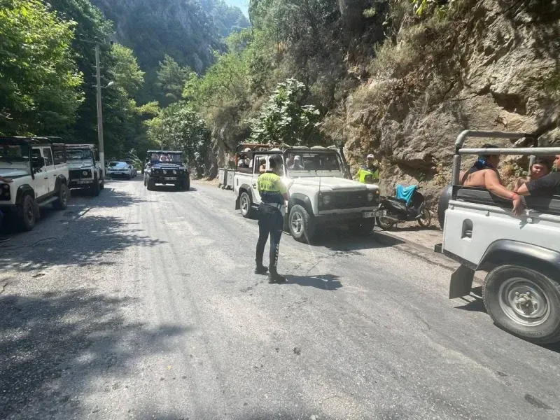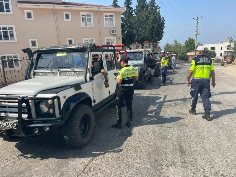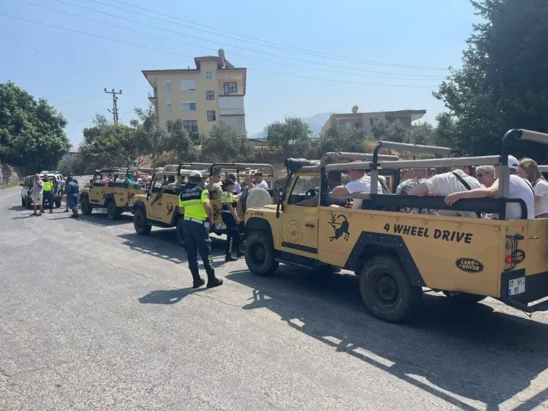 Alanya’da safari araçlarına yönelik yapılan denetimlerde 78 araç kontrol edildi, 11 araca ceza uygulanırken bir sürücünün ehliyetine alkollü araç kullanmaktan el konuldu