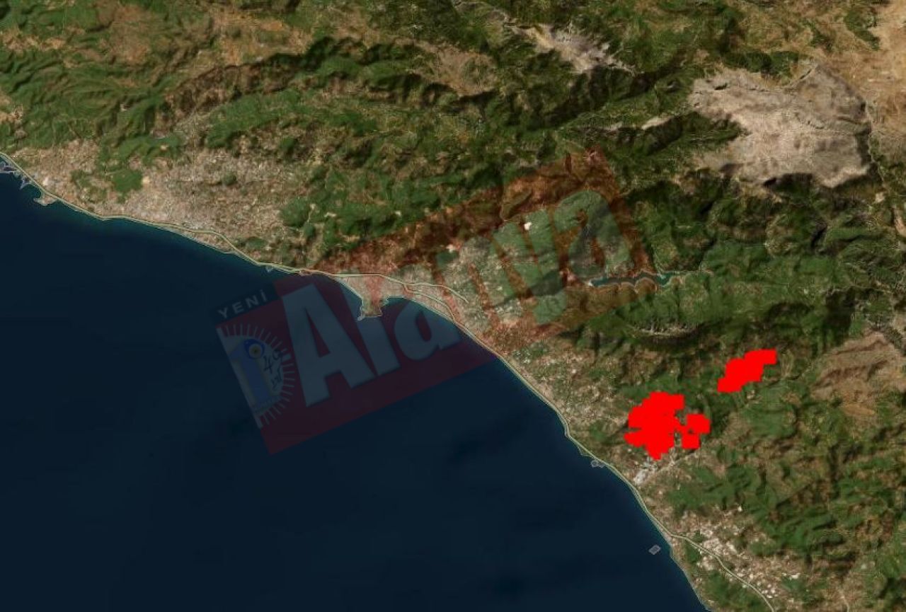 Alanya'nın Aliefendi Mahallesi'nde başlayan yangın bu sabah Yaylakonak ve Şıhlar Mahallesi'ne sıçradı. Dünya yörüngesinde bulunan uydular yangının uzaydan görüntülerini sağlamaya devam ediyor. Yangının geniş alana yayıldığı görülürken dumanların Akdeniz'de Antalya Körfezi boyunca yayıldığı görüldü.