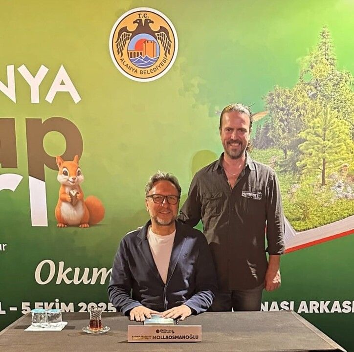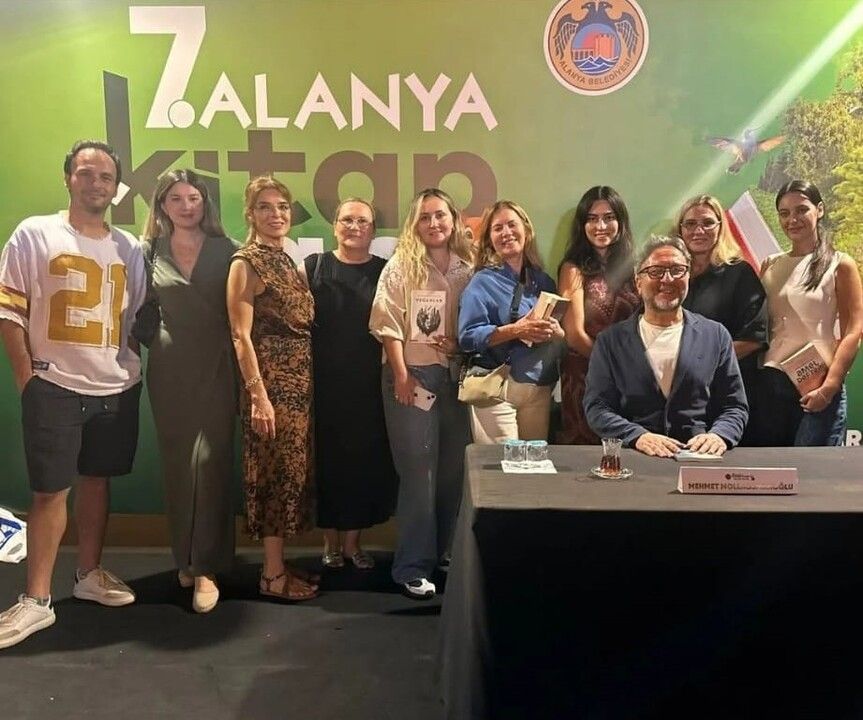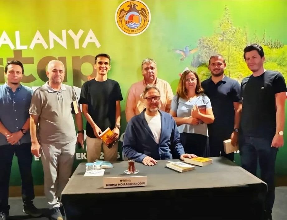 ALANYA Belediyesi'nin düzenlediği 7. Alanya Kitap Fuarı / Kitap Günleri, "Okumak Yeşertir" temasıyla 26 Eylül'de başladı, yarın da sona erecek. Çok sayıda ünlü yazarı ağırlayan fuar kapsamında Alanyalı roman yazarı Mehmet Mollaosmanoğlu da okurlarıyla buluştu. Eserlerini imzalayan Mollaosmanoğlu, okurlarıyla samimi bir buluşma gerçekleştirdi. İmza günü, yazarla yüz yüze görüşmek isteyen okurlar tarafından yoğun ilgi gördü. Ziyaretçiler hem kitaplarını imzalattı hem de yazara eserleri üzerine sorular yöneltme fırsatı buldu. Cemali AYDINOĞLU