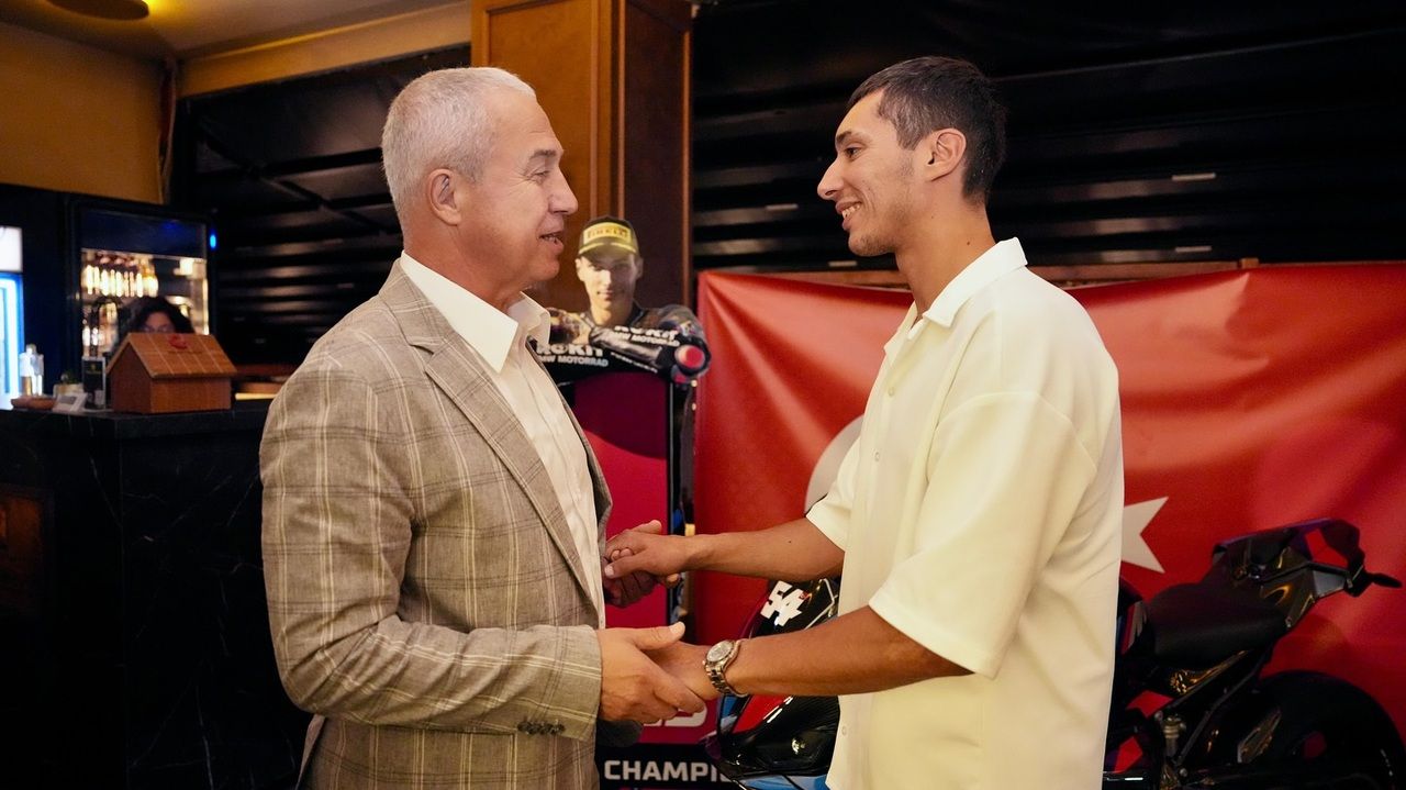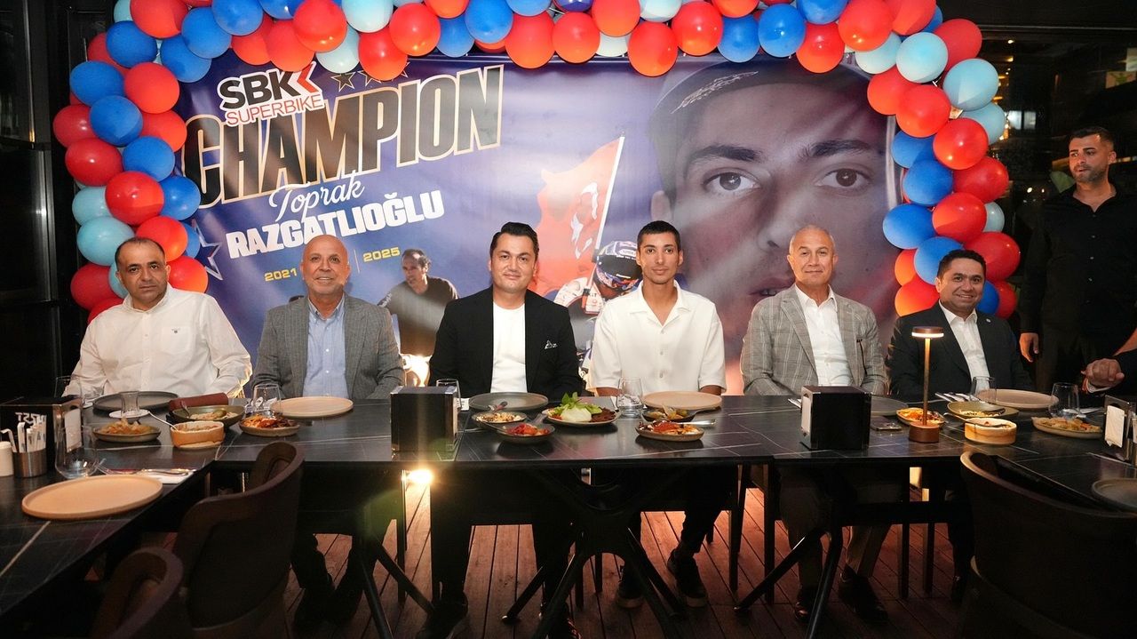 DÜNYA Superbike Şampiyonası’nda üçüncü kez dünya şampiyonu olarak Türkiye'ye büyük bir gurur yaşatan ve ülkemizi gelecek yıl MotoGP'de temsil edecek olan milli motosikletçi Toprak Razgatlıoğlu için Öztürk Kolcuoğlu Restaurant'ta onur yemeği düzenlendi. Programa; Alanya Kaymakamı Şakir Öner Öztürk, Alanya Belediye Başkanı Osman Tarık Özçelik, Corendon Alanyaspor Başkanı Hasan Çavuşoğlu ve ilçe protokolünün üyeleri katıldı. Programda konuşan Kaymakam Öztürk, milli sporcuyu tarihi başarısından dolayı tebrik ederek, Toprak Razgatlıoğlu'na rahmetli babasıyla olan anlamlı bir portre hediye etti.