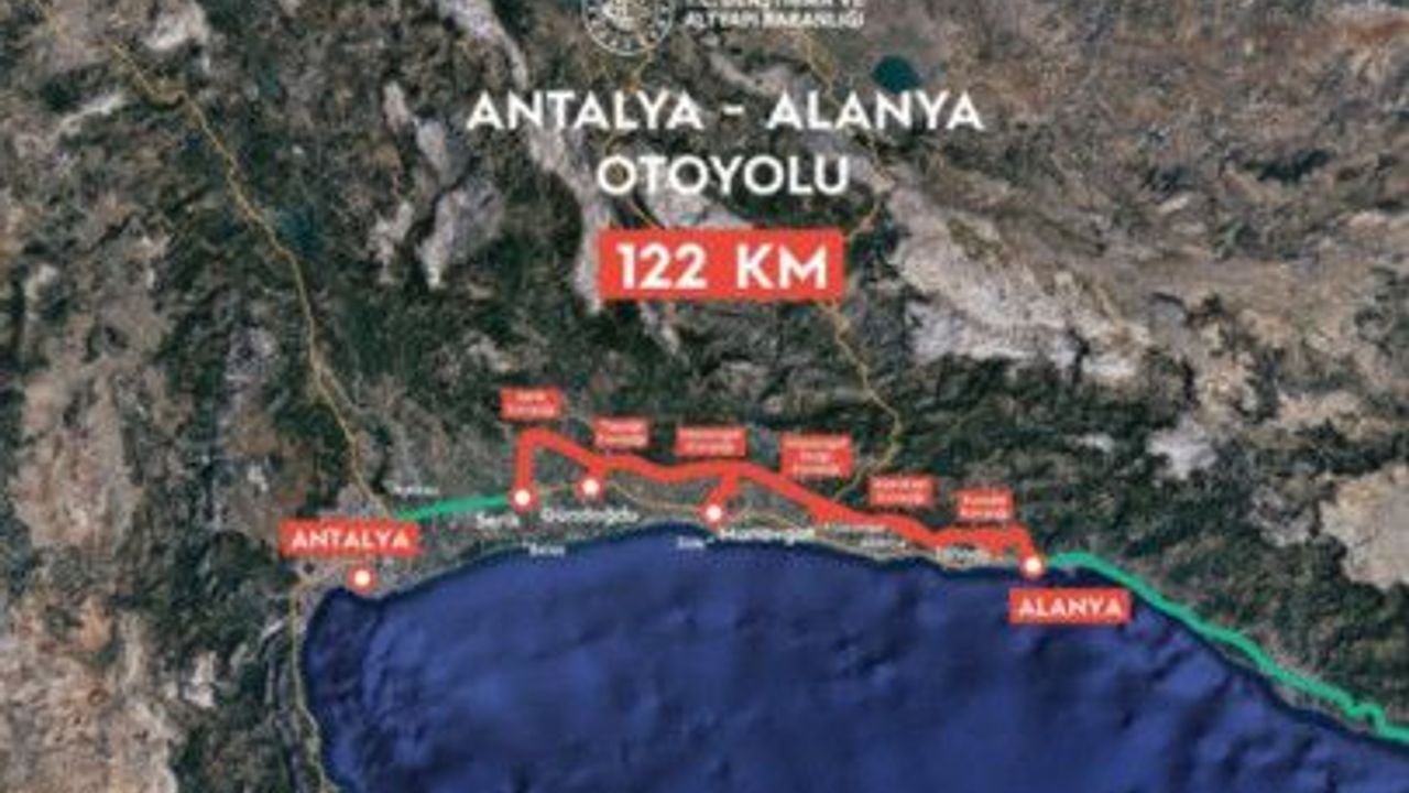 Antalya-Alanya Otoyolu Projesi’nin, 84 kilometresi 2×3 şeritli otoyol ve 38 kilometresi 2×2 şeritli bağlantı yolu olmak üzere toplam 122 kilometrelik bir güzergâhı kapsadığı, Serik Kavşağı’ndan başlayarak Manavgat’ın Doğusundan ilerleyecek otoyolun Konaklı’da son bulacağı bildirildi.