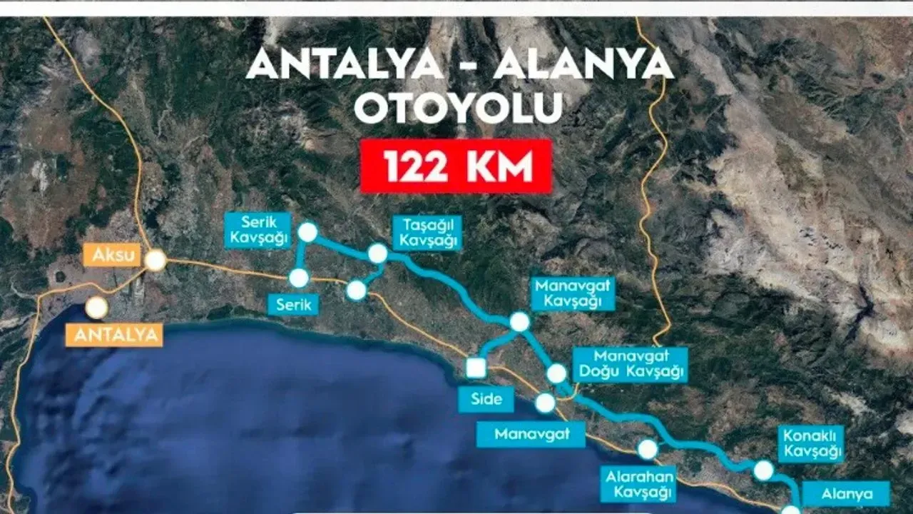 Toplam 122 kilometrelik güzergahı kapsayan proje, 84 kilometre otoyol ve 38 kilometre bağlantı yolundan oluşacak. Güzergah, Serik Kavşağı’ndan başlayarak Toros Dağları’nın eteklerinden geçip, Alanya Konaklı Mahallesi yakınındaki Alanya Batı Kavşağı’nda sona erecek. Proje kapsamında:
