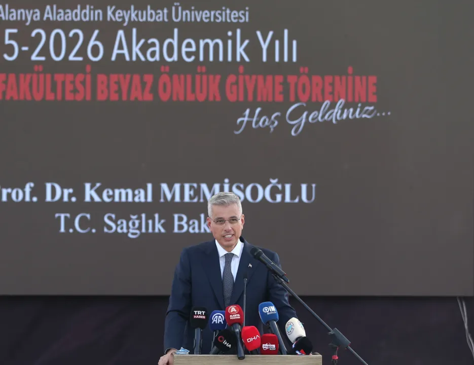 Alanya Alaaddin Keykubat Üniversitesi ( ALKÜ) 2025-2026 Akademik Yılı Açılış Töreni, İlk Ders ve Tıp Fakültesi Beyaz Önlük Giyme Töreni, Sağlık Bakanı Prof. Dr. Kemal Memişoğlu’nun katılımıyla büyük bir coşkuyla gerçekleşti. Kestel Amfi tiyatro alanında yapılan törene, Antalya Vali Vekili Salih Yüce, Antalya Milletvekili Tuba Vural Çokal, ALKÜ Rektörü Prof. Dr. Kenan Ahmet Türkdoğan, Alanya Kaymakamı Şakir Öner Öztürk, Alanya Belediye Başkanı Osman Tarık Özçelik, İl Sağlık Müdürü Prof. Dr. Behçet Özkan, Dim Medya Yönetim Kurulu Başkanı Mehmet Ali Dim, STK ve siyasi parti temsilcileri, kurum ve kuruluş başkanları, hayırseverler, Alanya protokolü, akademik, idari personel, öğrenciler, aileleri ve vatandaşlar katıldı.