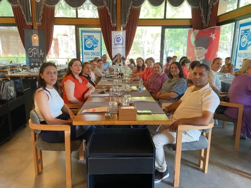 TURİZM sektöründe kat hizmetleri alanında önemli çalışmalara imza atan Hotel Kat Hizmetleri Eğitimi ve Dekorasyonu Derneği (HOTED), üyeleriyle düzenlenen kahvaltı etkinliğinde bir araya geldi. Alanya’nın Kızılalan Mevkii’nde, doğayla iç içe konumlanan Macerapark Restoran’da gerçekleşen etkinliğe, sektörün önde gelen isimleri yoğun ilgi gösterdi. Mavi Orkide Laundry firmasının ev sahipliğinde düzenlenen buluşmaya, Alanya Kent Konseyi Başkanı Nurhan Özcan, Alanya Aktif Gazeteciler Cemiyeti (ALGC) Başkanı Ferit Kesen, Alanya araştırmacısı, tarihçi ve yazar Oğuz Korum ile HOTED üyeleri katılım sağladı. Sektörel iş birliğini güçlendirmek, sorunlara çözüm üretmek ve yeni dönem stratejilerini değerlendirmek amacıyla gerçekleştirilen etkinlikte, hem kat hizmetleri alanındaki güncel problemler masaya yatırıldı hem de tecrübe paylaşımı yapıldı. HOTED Başkanı Sevgi Topuzel’in sektörün en büyük sorunlarından biri haline gelen personel transferleri konusundaki uyarıları dikkat çekerken, ev sahibi Mavi Orkide Laundry’nin kurucusu Mesut Bey ise bölgedeki hizmet dengesi ve yatırım sürecine dair önemli bilgiler paylaştı.