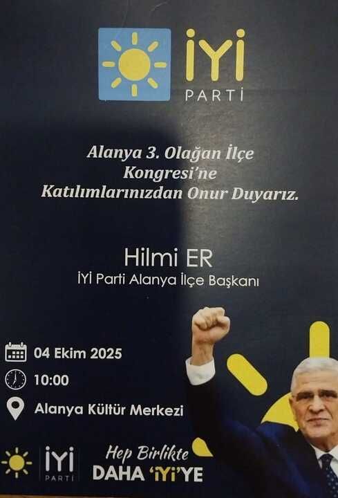Kongre öncesinde bir açıklama yapan İlçe Başkanı Hilmi Er, bu önemli buluşmaya tüm Alanya halkını davet etti. Er, "Partimizin olağan kongresinde, partili olsun veya olmasın, tüm Alanyalı hemşerilerimizi aramızda görmekten mutluluk duyarız. Bu kongre, sadece İYİ Parti'nin değil, Alanya'nın geleceği için de bir buluşma noktasıdır," ifadelerini kullandı.