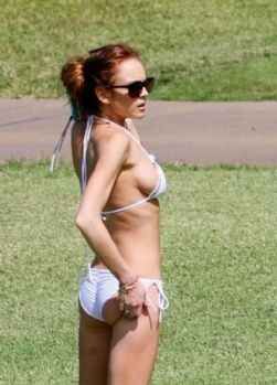 Lindsay Lohan haşemayı attı, sutyeni taktı!