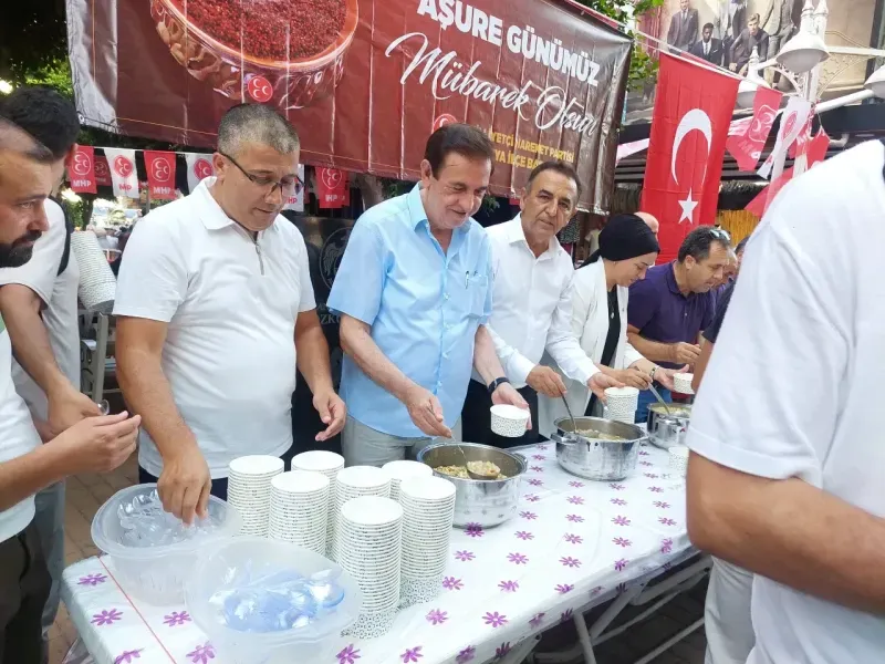 MHP Alanya İlçe Teşkilatı, geleneksel hale getirdiği aşure etkinliğini bu yıl da parti binası önünde gerçekleştirdi. Saat 17.00’de başlayan etkinliğe çok sayıda partili ve vatandaş katıldı. Etkinlik boyunca misafirlere aşure ikram edilirken, katılımcılar hem lezzetli aşurenin tadına baktı hem de bir araya gelmenin keyfini yaşadı. MHP amblemine yer verilen özel sunumlu aşure, katılımcılardan büyük beğeni topladı. Etkinlik, sıcak ve samimi bir ortamda gerçekleşirken, partililerle vatandaşlar arasında hoş sohbetler yaşandı.
