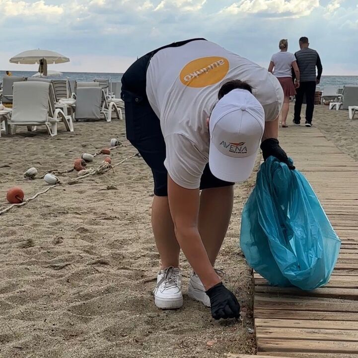 Düzenlenen etkinlikte, tur operatörünün misafirleri, otel çalışanları ve gönüllüler bir araya gelerek sahil boyunca atıkları topladı.