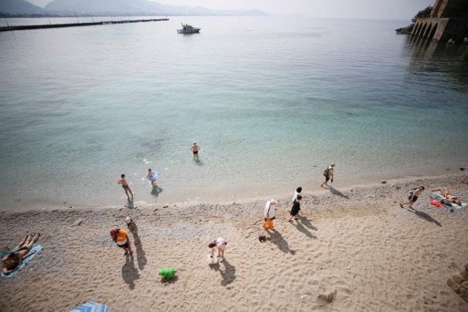 Plajda denize giren tatilcilerden İbrahim Yarımoğlu,