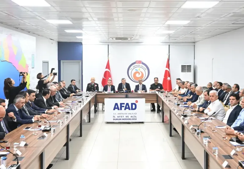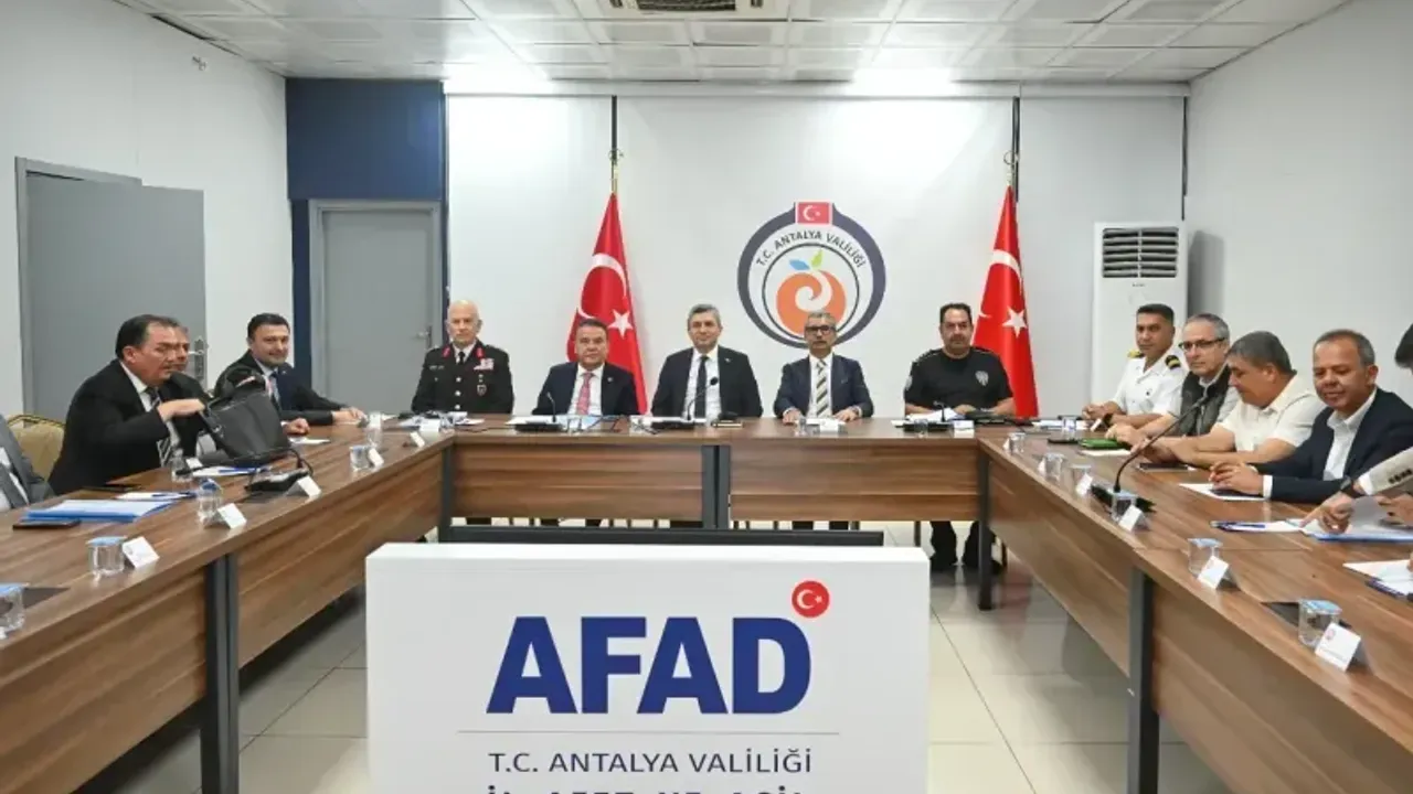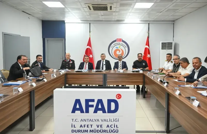 Turizm bölgelerinde huzuru bozan davranışlarla mücadele edilmesi ve tüm denetim süreçlerinin kurumlar arası iş birliğiyle etkin şekilde yürütülmesi amacıyla düzenlenen Turizm Güvenliği Toplantısı, Antalya Valisi Hulusi Şahin'in başkanlığında gerçekleştirildi. AFAD İl Müdürlüğü'nde gerçekleştirilen toplantıya Vali Hulusi Şahin, Antalya Büyükşehir Belediye Başkanı Muhittin Böcek, Vali Yardımcısı Ayhan Yazgan, kaymakamlar, ilçe belediye başkanları, İl Jandarma Komutanı Tuğgeneral Tarık Hekimoğlu, İl Emniyet Müdürü İlker Arslan, kamu kurum ve kuruluş yetkilileri ile basın mensupları katıldı.