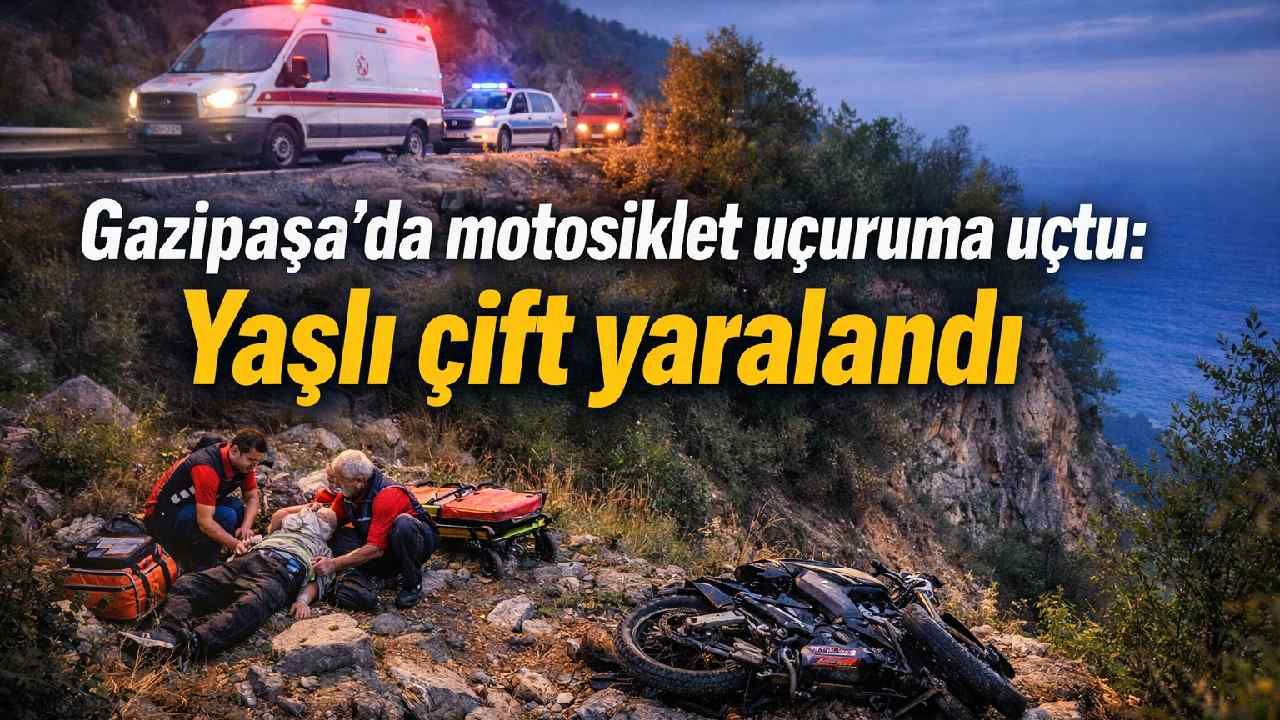 Antalya’nın Gazipaşa ilçesinde kontrolden çıkan motosiklet yaklaşık 5 metrelik uçuruma düştü. Kazada 70 yaş üstü iki kişi yaralandı.