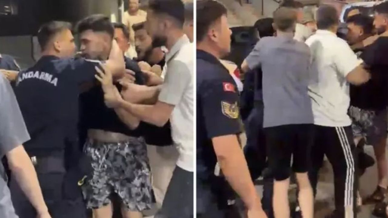 Olay anına ilişkin güvenlik kameralarına yansıyan görüntülerde, bazı jandarma personeline yumruk atıldığı ve bir şüphelinin görevli memura dönerek,