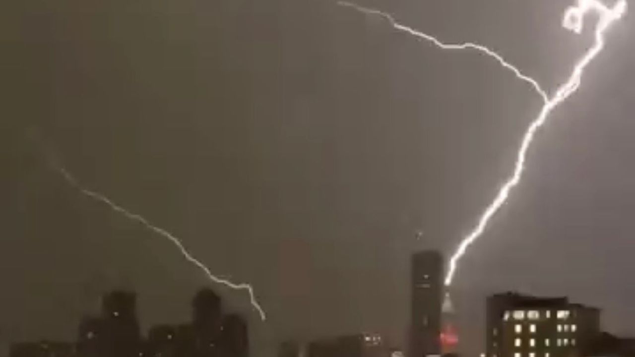 İstanbul'da akşam saatlerinde etkili olan gök gürültülü sağanak yağış nedeniyle, Ümraniye'de Finans Merkezi'ndeki bir binaya yıldırım düştü. İstanbul genelinde akşam saatlerinde gök gürültülü sağanak yağış etkili oldu. Ümraniye'de Finans Merkezi'ndeki bir binaya yıldırım düştü. O anlar cep telefonuyla kaydedildi.