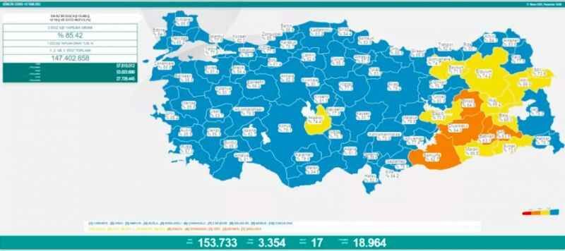 En az iki doz aşı uygulananların oranı en düşük iller ise Şanlıurfa, Batman, Siirt, Diyarbakır, Bingöl, Muş, Mardin, Bitlis, Ağrı ve Elazığ olarak sıralandı.