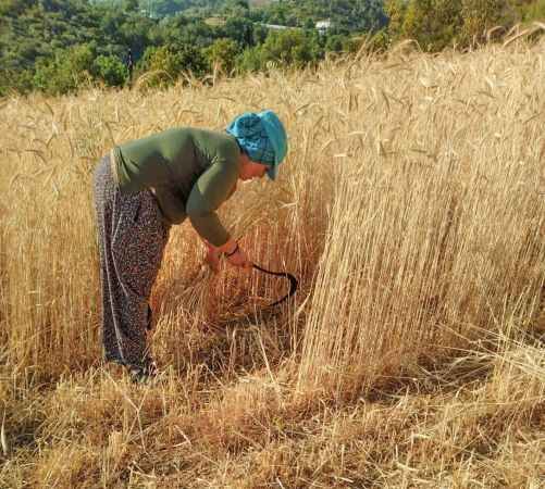 Arazinin şartlarından dolayı teknoloji kullanamadıklarını belirten Çağlayan, “Buğday hasadını insan gücüyle yapıyoruz. Normal şartlarda makinenin birkaç saatte yapacağı işi bizler 3-5 kişi ile iki günde yapıyoruz. Daha sonra biçtiğimiz ekinleri, traktörün gelebildiği en yakın noktaya sırtımızla taşıyoruz. Taşıma işi de bir gün sürer. Ardından harmanımızı kurup, buğday ve saman elde ediyoruz. Hasattan kaldırdığımız buğdayı, evin un ve ekmek ihtiyacını karşılamak için kullanıyoruz. Hasattan elde ettiğimiz saman ile havyalarımızı besliyoruz. 2022 yılının buğday hasadı tüm üreticilerimize hayırlar getirsin” ifadelerini kullandı. Öte yandan çağlayan, hasadına başladıkları buğdayı, kasım ve aralık ayında karasabanla toprağa ektiklerini belirtti.