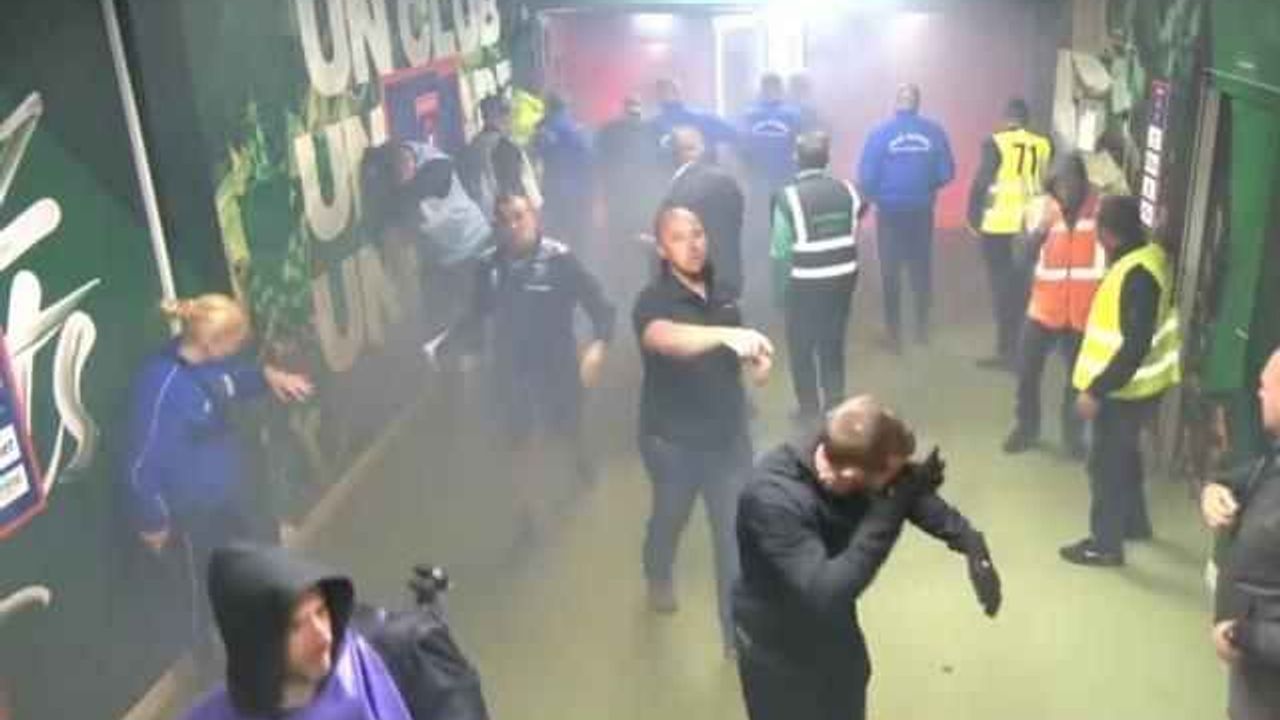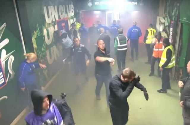 Fransa Ligue 1'in 10 şampiyonlukla Paris Saint-Germain ile birlikte en çok şampiyon olan takımı St. Etienne'nin küme düşmesinin ardından taraftarlar ortalığı savaş alanına çevirdi. Ellerindeki meşaleleri sağa sola fırlatan holiganlar stadı adeta ateşe verdi. Futbolcular kendilerini soyunma odasına atarak kıl payı hayatını kurtardı.