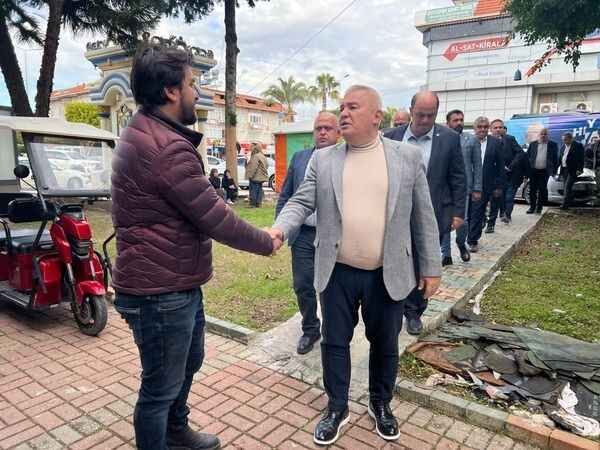 EDİNİLEN bilgiye göre yangın saat 03.00 sıralarında Konaklı Mahallesi’nde bulunan turistik çarşı içerisinde meydana gelmiş; Mustafa Korkmaz, berber Hasan Er ve Mehmet Çakal’a ait deri ve butik dükkanları çıkan yangında küle dönmüştü. Toplam 5 dükkan ve bir otomobilin yanarak küle döndüğü yangın sonrası bölgeyi ilk ziyaret eden İYİ Parti Alanya Belediye Başkan Adayı Mehmet Şahin, yangınca can kaybı olmamasının tek tesellileri olduğunu ifade etti. Yangın yaralarını birlikte saracaklarını ifade eden Şahin, esnafın yanında olduğunu ifade etti. Şahin’e Alanya Esnaf ve Sanatkarlar Odası (ALESO) Başkanı Nuri Demir ve Konaklı Mahallesi Muhtarı Mustafa Arınç da eşlik etti. (Toygar DİM)