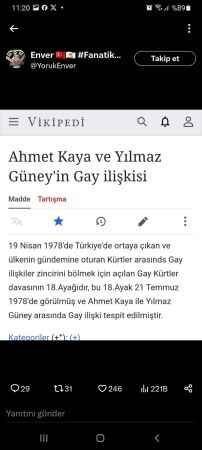 Geçtiğimiz günlerde bir Twitter kullanıcısının ortaya attığı iddia herkesi şok etti. İddiaya göre Ahmet Kaya ve Yılmaz Güney arasında gizli bir eşcinsel ilişki yaşandığı ve bu durumun 19 Nisan 1978 yılında ifşa edildiği belirtildi. İddiayı ortaya atanların kaynak olarak Vikipedia'da bir yazıyı kanıt olarak göstermesi sosyal medyada tartışmanın fitilini ateşledi.