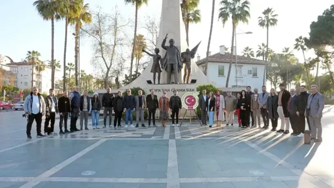TÜM yurtta olduğu gibi Alanya’da da ’10 Ocak Çalışan Gazeteciler Günü’ çeşitli etkinliklerle kutlandı. Alanya Aktif Gazeteciler Cemiyeti (ALGC) kutlama programına Atatürk Anıtı'na çelenk sunumuyla başladı. Çelenk törenine ALGC Yönetim Kurulu Üyeleri ve gazeteciler katıldı. ALGC Başkan Yardımcısı Mesut İlhan’ın Atatürk Anıtı’na çelenk sunduğu tören saygı duruşu ve İstiklal Marşı’nın okunmasıyla son buldu. Fotoğraf çekimin ardından cemiyet üyeleri kahvaltı programı için Kahveland Alanya Premium’a geçti.