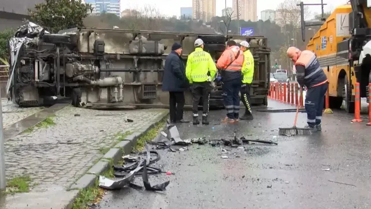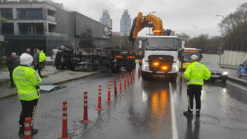 Kaza nedeniyle trafikte yoğunluk oluştu. Kaza yapan kamyonun kaldırılması için çalışmalar sürüyor.