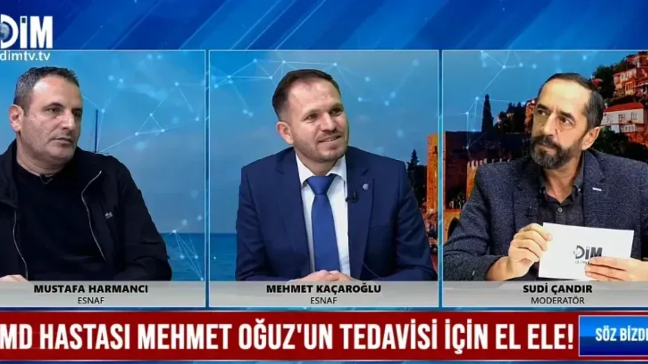 DİM TV'de yayınlanan Söz Bizde programına konuk olan Mustafa Harmancı ve Mehmet Kaçaroğlu, DMD hastası Mehmet Oğuz'un yaşaması için Alanya kamuoyundan destek istedi.