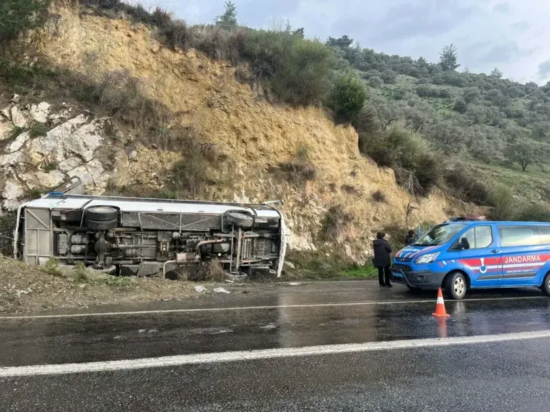 Didim'den İzmir’in Karaburun ilçesindeki Nergis Festivali'ne gidenleri taşıyan N.Ç idaresindeki tur midibüsü, sürücüsünün direksiyon kontrolünü kaybetmesi sonucu devrildi. Kazada, midibüsteki 23 kişi yaralandı. İhbar üzerine bölgeye jandarma, sağlık ve itfaiye ekipleri sevk edildi. Midibüste sıkışan Z.G. de itfaiyeciler tarafından kurtarılıp sağlık görevlilerine teslim edildi. Müdahalelerinin ardından çevre hastanelere kaldırılan yaralıların sağlık durumunun iyi olduğu öğrenildi.