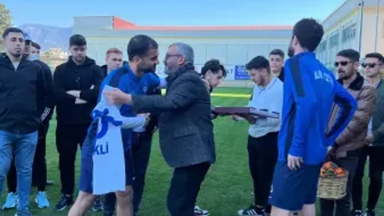 ALANYA'NIN tanınmış simalarından olan Ömer Zavlak, Nesine 3. Lig 3. Grup'ta mücadele eden Alanya 1221 Futbol Spor Kulübü'nün dün gerçekleşen antrenmanını yeğenleri ile birlikte ziyaret etti. Ligde yarın Ayvalıkgücü'nü konuk edecek mavi beyazlı ekibe başarı dileyen Zavlak ve yeğenleri, başkanlığı bırakacağının sinyallerini veren Kulüp Başkanı Levent Uğur'a destek sözü verdiler. "Alanya 1221 FSK, Levent Uğur'la çok çetin yollardan geçerek buralara kadar geldi. Başkanımızın ve takımımızın her zaman yanındayız" dedi.