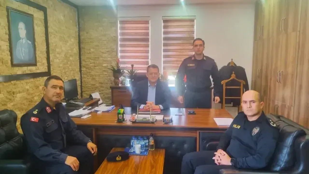 Kaymakam Ürkmezer'e ziyaretinde İlçe Jandarma Komutanı Binbaşı Hüseyin Direk ve İlçe Emniyet Müdürü Murat Kenan Patat eşlik etti. (Gülser YİĞİT)