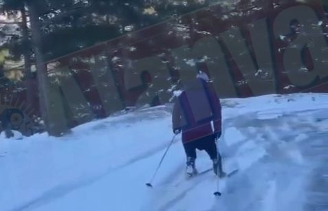 Kameralara takılan şalvarlı kar kayakçıları gülümsetti.