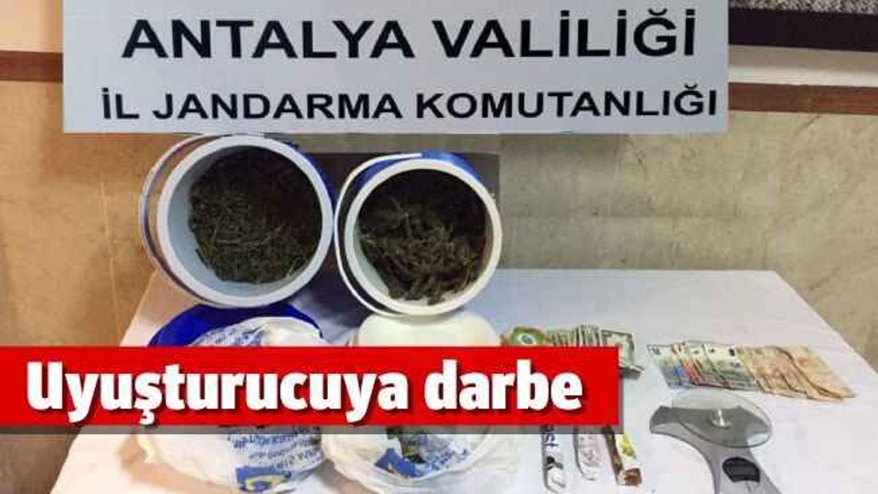 ANTALYA İl Jandarma Komutanlığı ekiplerinin Alanya ve Manavgat'ta yaptığı uyuşturucu operasyonlarında yaklaşık 24 kilogram esrar ele geçirildi. İl Jandarma Komutanlığı ekipleri, 'uyuşturucu ile mücadele' kapsamında ilk olarak Manavgat'ta Milli Egemenlik Mahallesi'nde oturan İ.A'nın evine baskın yaptı. Evde yapılan aramada 4 kilo 250 gram esrar maddesi, hassas terazi ve uyuşturucu ticaretinden elde edildiği değerlendirilen 650 TL, 172 dolar ve 115 Euro ele geçirildi. Uyuşturucu ve paraya el koyan ekipler, İ.A'yı gözaltına aldı.