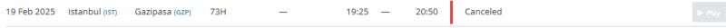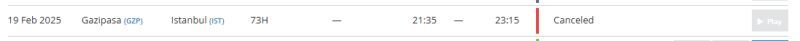 Kar fırtınası alarmının ardından Türk Hava Yolları'nın TK2598 sefer sayılı İstanbul - Alanya GZP uçuşu iptal edildi. Planlanan kalkış saati 19:25, varış saati ise 20:50 olarak belirlenmişti. Dönüş seferi olan TK2599 sefer sayılı Alanya GZP - İstanbul uçuşu da iptal edilmiş oldu. Planlanan kalkış saati 21:35 olan sefer, İstanbul'dan gelmesi beklenen seferin iptali nedeniyle yapılamayacak.