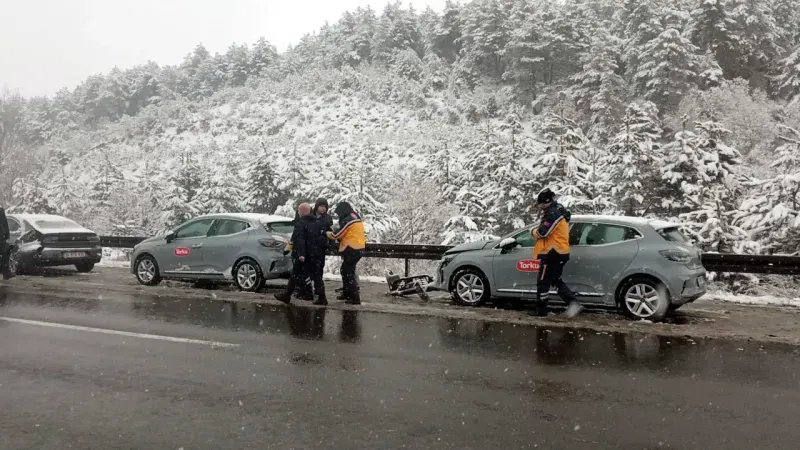 İlk kaza, saat 15.00 sıralarında Anadolu Otoyolu'nun Köroğlu rampaları mevkisinde meydana geldi. İstanbul yönüne giden hafif ticari, kar nedeniyle kayganlaşan yolda önünde seyreden yolcu otobüsüne çarptı. Bu sırada kazanın olduğu bölgede aynı yönde giden 1 otomobil de önündeki TIR'a çarptı. Aynı bölgedeki üçüncü kazada da otomobil kayarak kamyona arkadan çarptı.