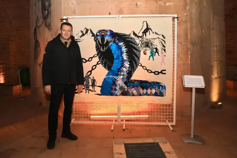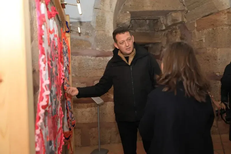 GAZİPAŞA Kaymakamlığı tarafından düzenlenen Gazipaşa Yalan Dünya Mağarası’nda Dalga Kumaş teması ile açılışı gerçekleştirilen 2. Türkiye Tekstil Bienali'nde sanatçıların birbirinden güzel eserleri Alanya'nın simgelerinden tarihi Kızılkule ve Tersane’de sergilendi. Tarihi Kızılkule ve Tersane'de açılan sergiye Kaymakam Ürkmezer, Belediye Başkan Vekili Ufuk Aras, Müze Müdürü Seher Türkmen, Alanya Kent Konseyi Başkanı Nurhan Özcan ve vatandaşlar katıldı. Programda sergi alanlarını gezen Kaymakam Ürkmezer 40'a yakın sanatçı tarafından oluşturulan birbirinden güzel eserleri inceleyerek emek ve çalışmalarından dolayı kendilerine teşekkür etti. Bianel'deki eserler 13 Nisan’a kadar sergilenmeye devam edecek. (Alanya Kaymakamlığı BÜLTEN)