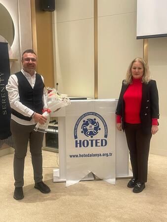 ALANYA merkezi bir sivil toplum kuruluşu olan Hotel Kat Hizmetleri Eğitimi ve Dekorasyonu Derneği (HOTED), housekeeping mesleğinin tanıtımı ve turizm sektörünün gelişimi için eğitimler, seminerler ve etkinlikler düzenlemeye ediyor. Mesleki gelişimi desteklemek amacıyla kurslar ve paneller organize ederek, otellerin profesyonel housekeeper ihtiyacını karşılamayı hedefleyen HOTED, Serenity Queen Hotel'de verimli bir eğitim semineri daha gerçekleştirdi. Aromise Kurumsal Kokulandırma Firması tarafından düzenlenen eğitim seminerinde, işletmeler için imza kokularının önemi vurgulandı. Hotel Koordinatörü Cengiz Aksoyer, yaptığı konuşmada HOTED ailesine teşekkür ederek, derneğin sektöre katkılarına dikkat çekti. Aromise Firması Bayii Koordinatörü ve Eğitim Müdürü Burak Kamçılıer ise, katılımcılarla işletmelerin imza kokuları konusunda değerli bilgiler paylaştı. HOTED yetkilileri, mesleki gelişimi desteklemek ve turizm sektöründe kaliteyi artırmak amacıyla faaliyetlerine devam edeceklerini söyledi. Cemali AYDINOĞLU