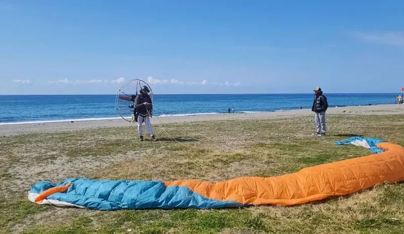 Sahildeki kalabalık, Ulusky Paraşüt Okulu pilotlarından Recep Aykut'un paramotorla yaptığı paraşüt gösterisiyle coştu. Aykut'un gökyüzünde sergilediği akrobatik hareketler, izleyenleri büyüledi.