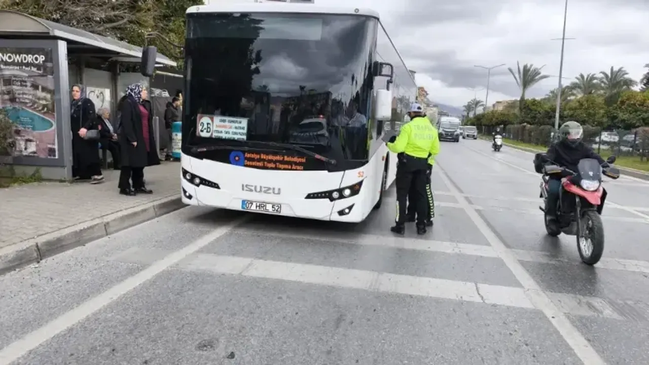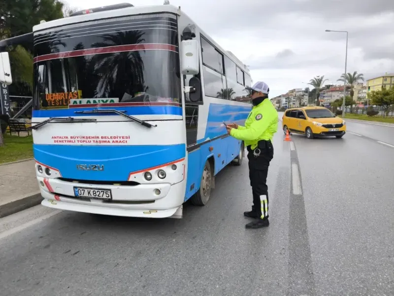 ALANYA İlçe Emniyet Müdürlüğü tarafından toplu taşıma aracı sürücülerine yönelik trafik denetimleri yapıldı. Yapılan denetimlerde; 41 toplu taşıma araç sürücüsü kontrol edildi. Kontrollerde 7 araç sürücüsüne 71 bin 309 TL para cezası uygulandı. (Mazlume GÖKTAŞ)