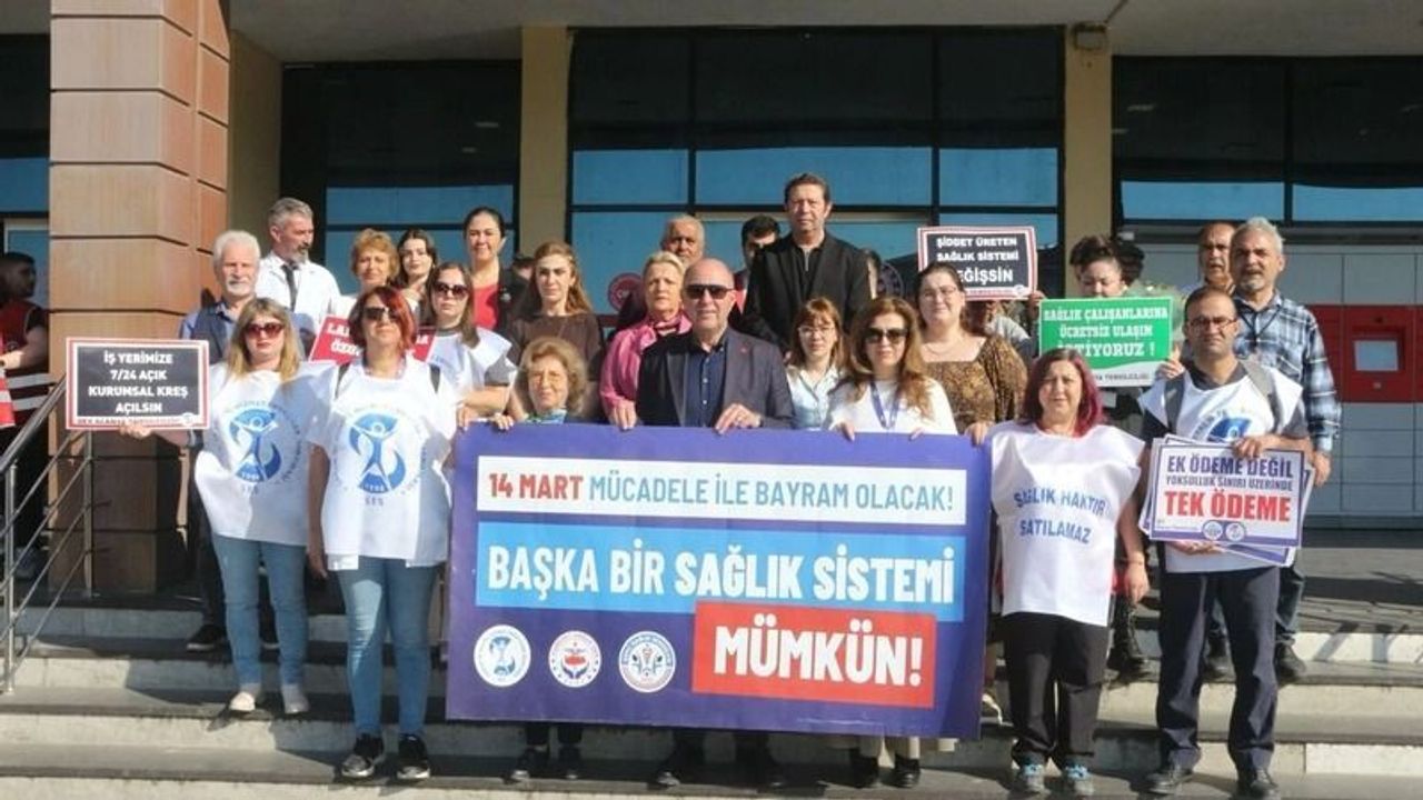 ALANYA'DA sağlık çalışanları, 14 Mart Tıp Bayramı'nda iş bırakma eylemi yaptı. Alanya Eğitim ve Araştırma Hastanesi (EAH) önünde düzenlenen greve, Sağlık ve Sosyal Hizmet Emekçileri Sendikası (SES) Alanya Temsilciliği, Genç Sağlık Sen Alanya Temsilciliği ve Hürriyet Sen Alanya Temsilciliği destek verdi.